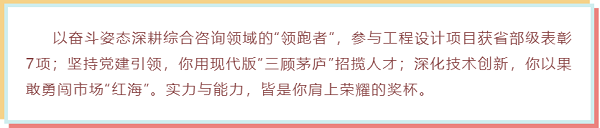 “成功的花,人們只驚慕她現(xiàn)時的明艷!然而當(dāng)初它的芽兒,浸透了奮斗的淚泉,灑遍了犧牲的血雨”,這是他最喜歡的一句詩。在咨詢的道路上,他不斷更新知識結(jié)構(gòu),努力克服“知識恐慌”,苦練內(nèi)功,用自己的實(shí)戰(zhàn)業(yè)績贏得了市場、也贏得了業(yè)主的認(rèn)可,成為公司綜合咨詢領(lǐng)域的技術(shù)創(chuàng)新領(lǐng)軍人物。